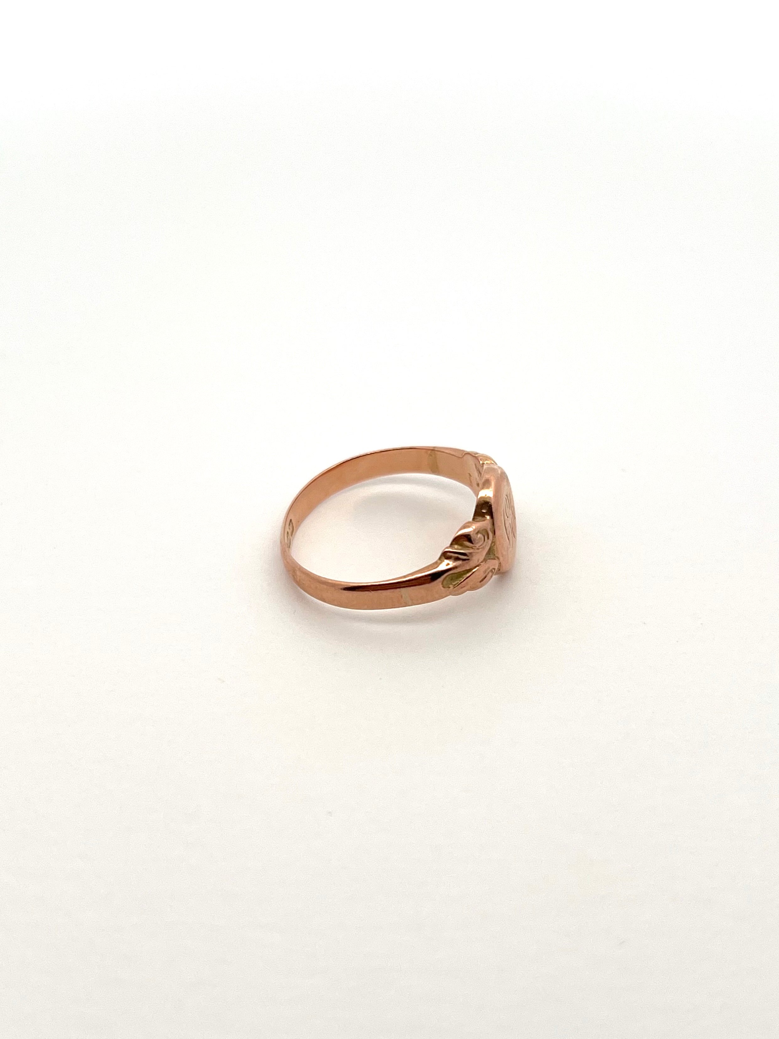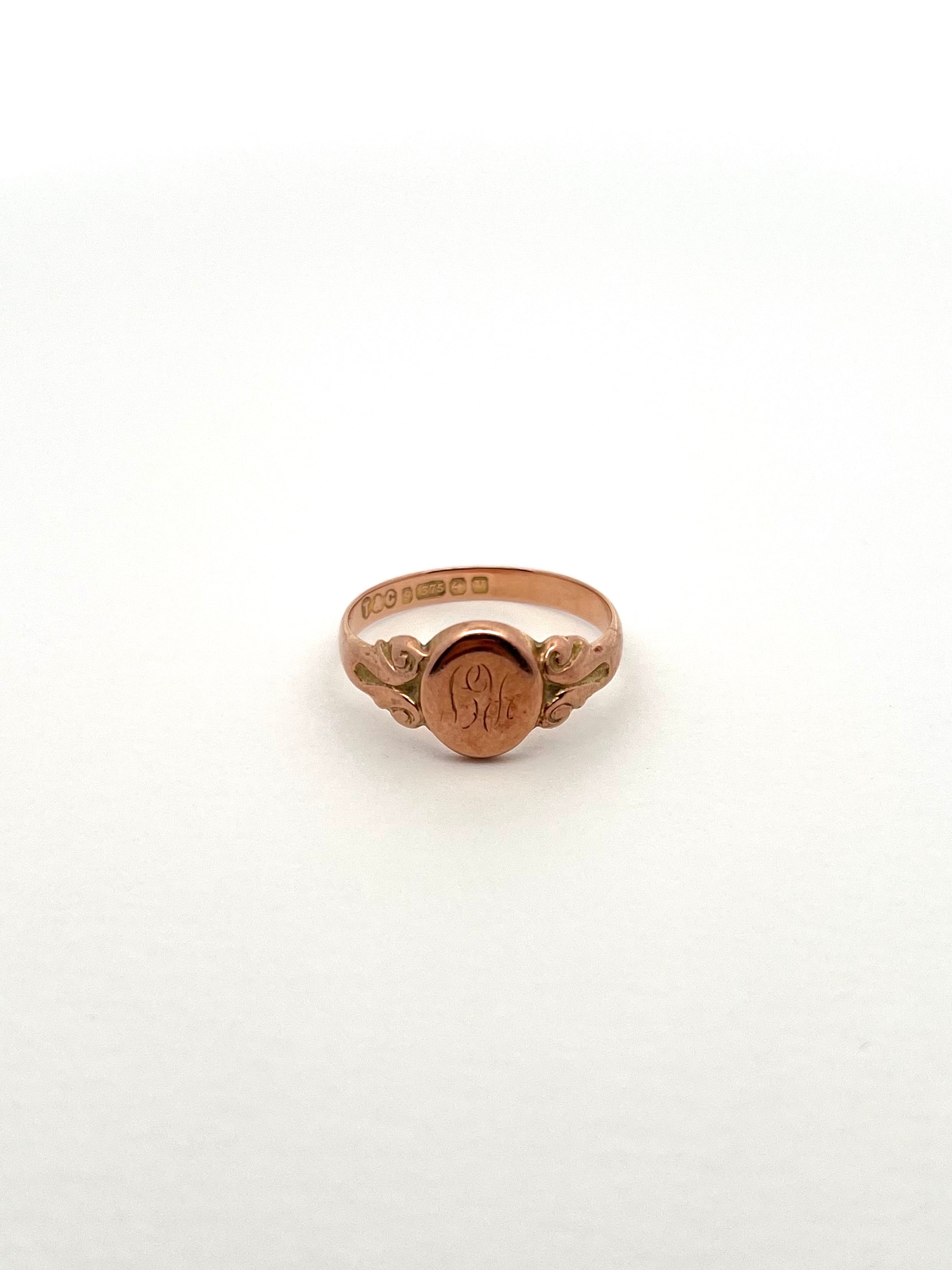 ショルダーにあしらわれた装飾がヴィンテージ感を漂わせるシグネットリングです。